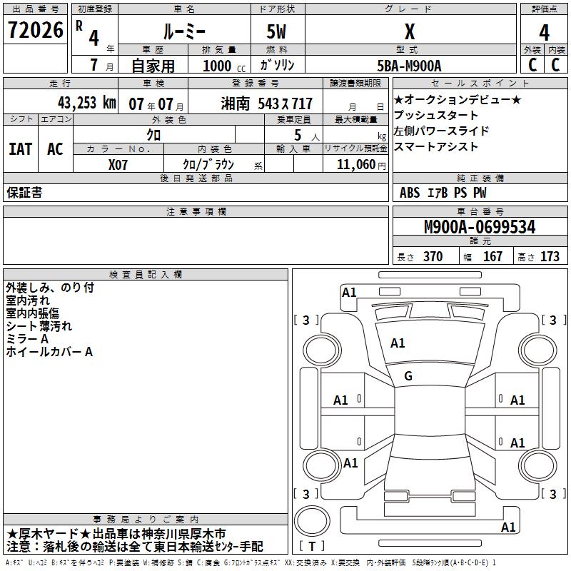 TOYOTA ROOMY - лот 72026