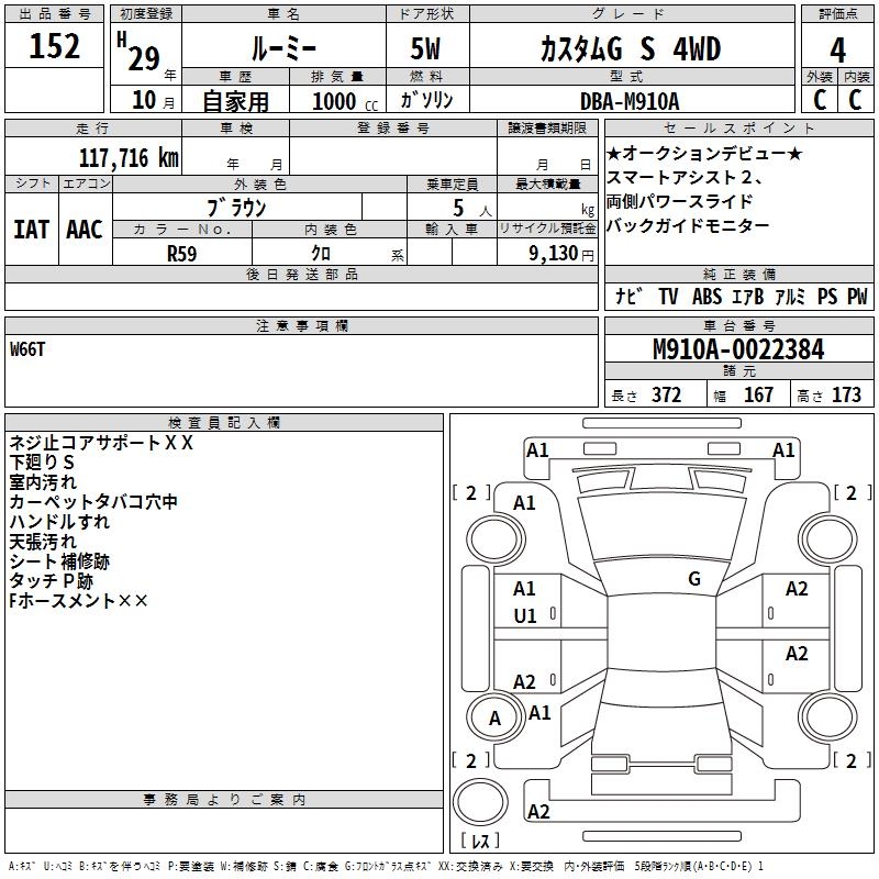 TOYOTA ROOMY - лот 152