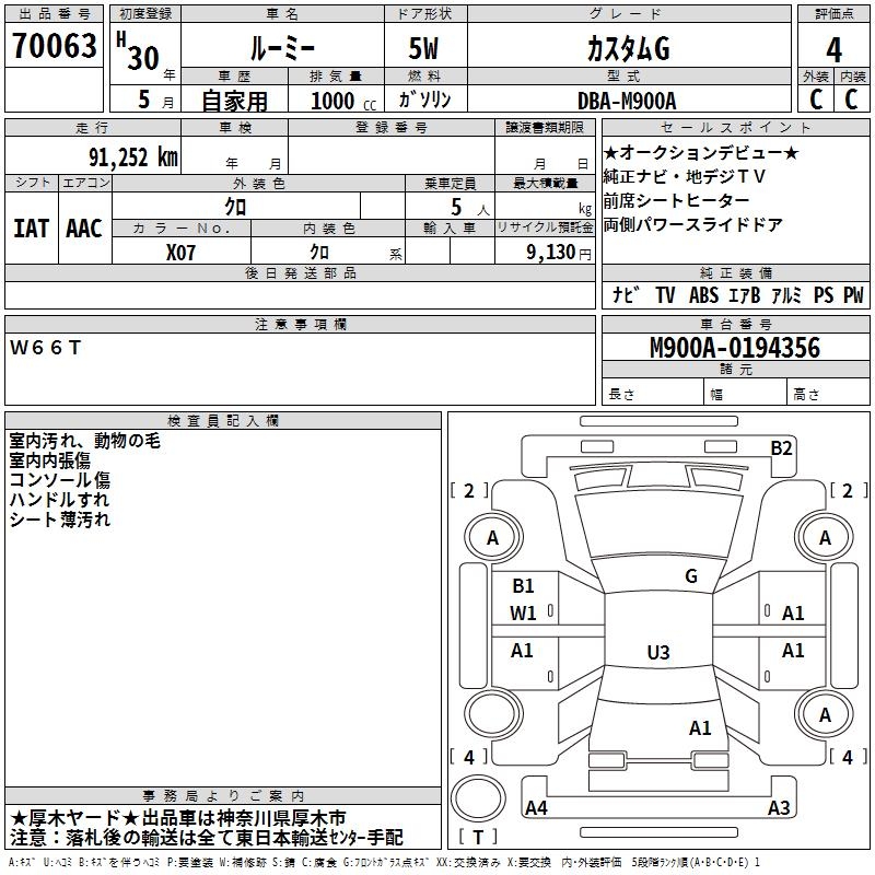 TOYOTA ROOMY - лот 70063