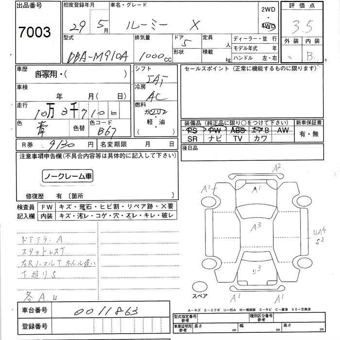 TOYOTA ROOMY - лот 7003