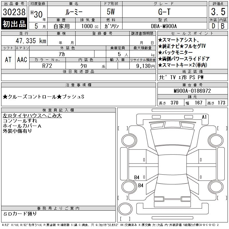 TOYOTA ROOMY - лот 30238