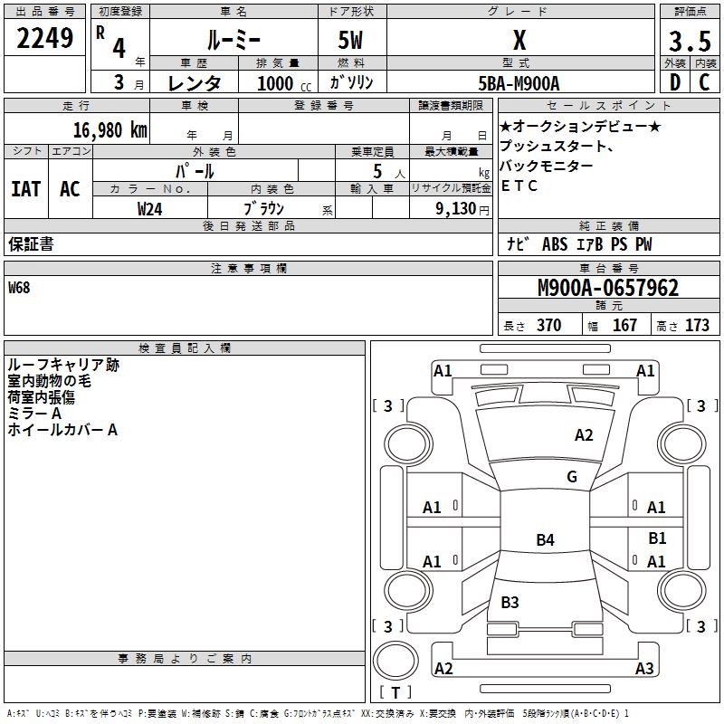 TOYOTA ROOMY - лот 2249