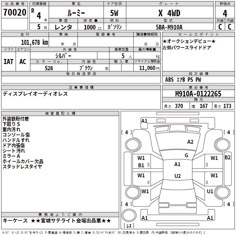 TOYOTA ROOMY - лот 70020