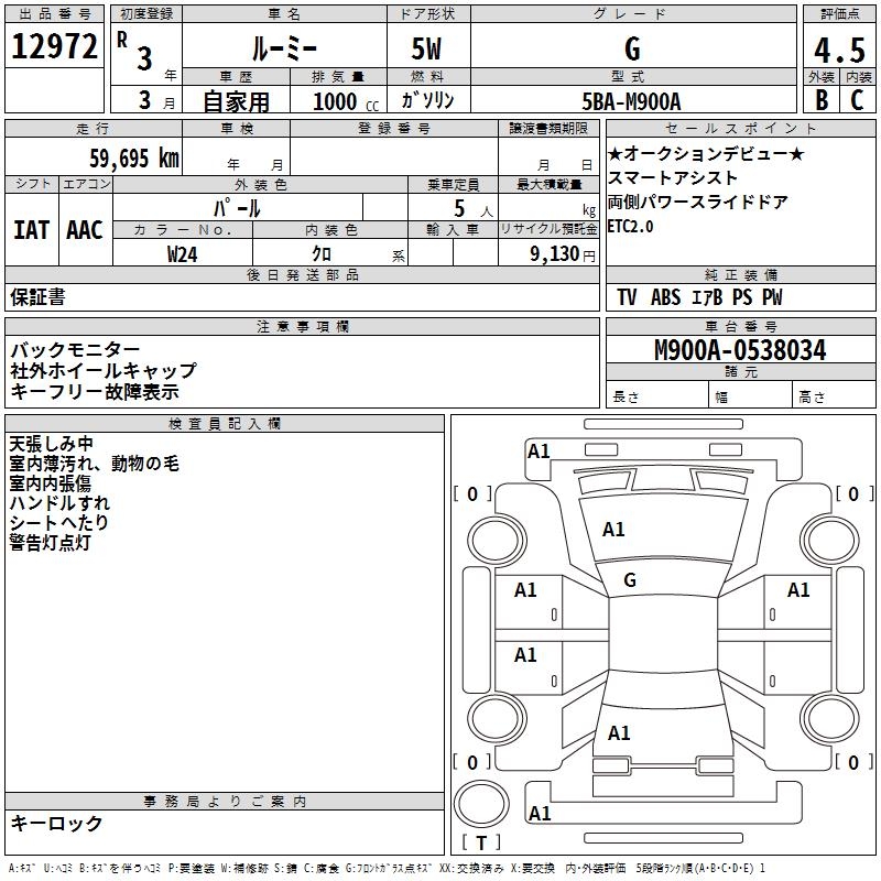 TOYOTA ROOMY - лот 12972