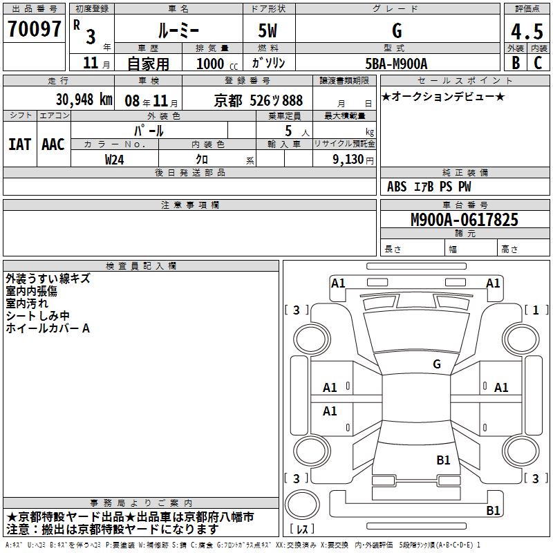 TOYOTA ROOMY - лот 70097