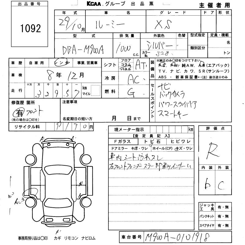 TOYOTA ROOMY - лот 1092