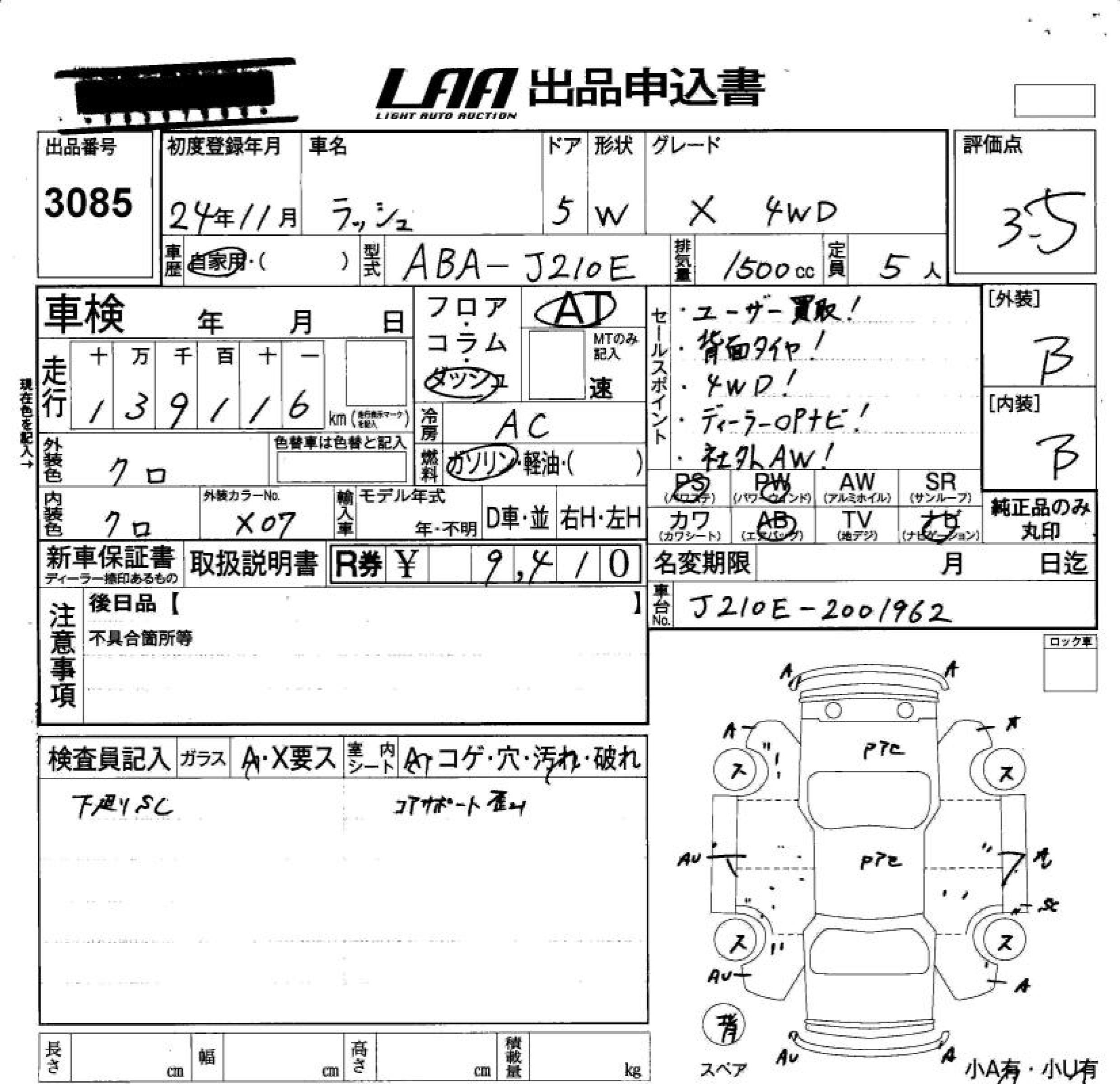 TOYOTA RUSH X 4WD - лот 3085