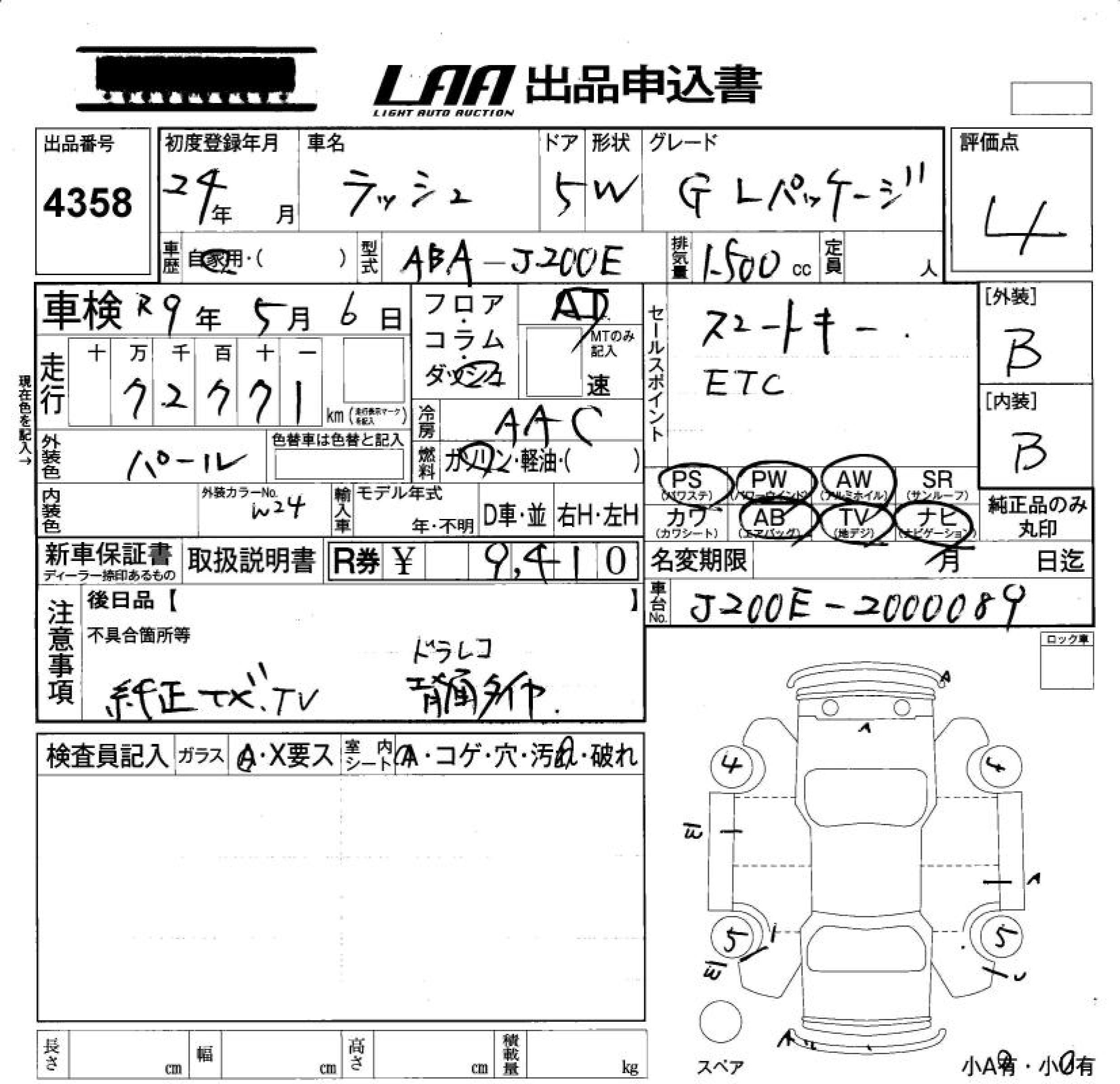 TOYOTA RUSH G L PACKAGE - лот 4358