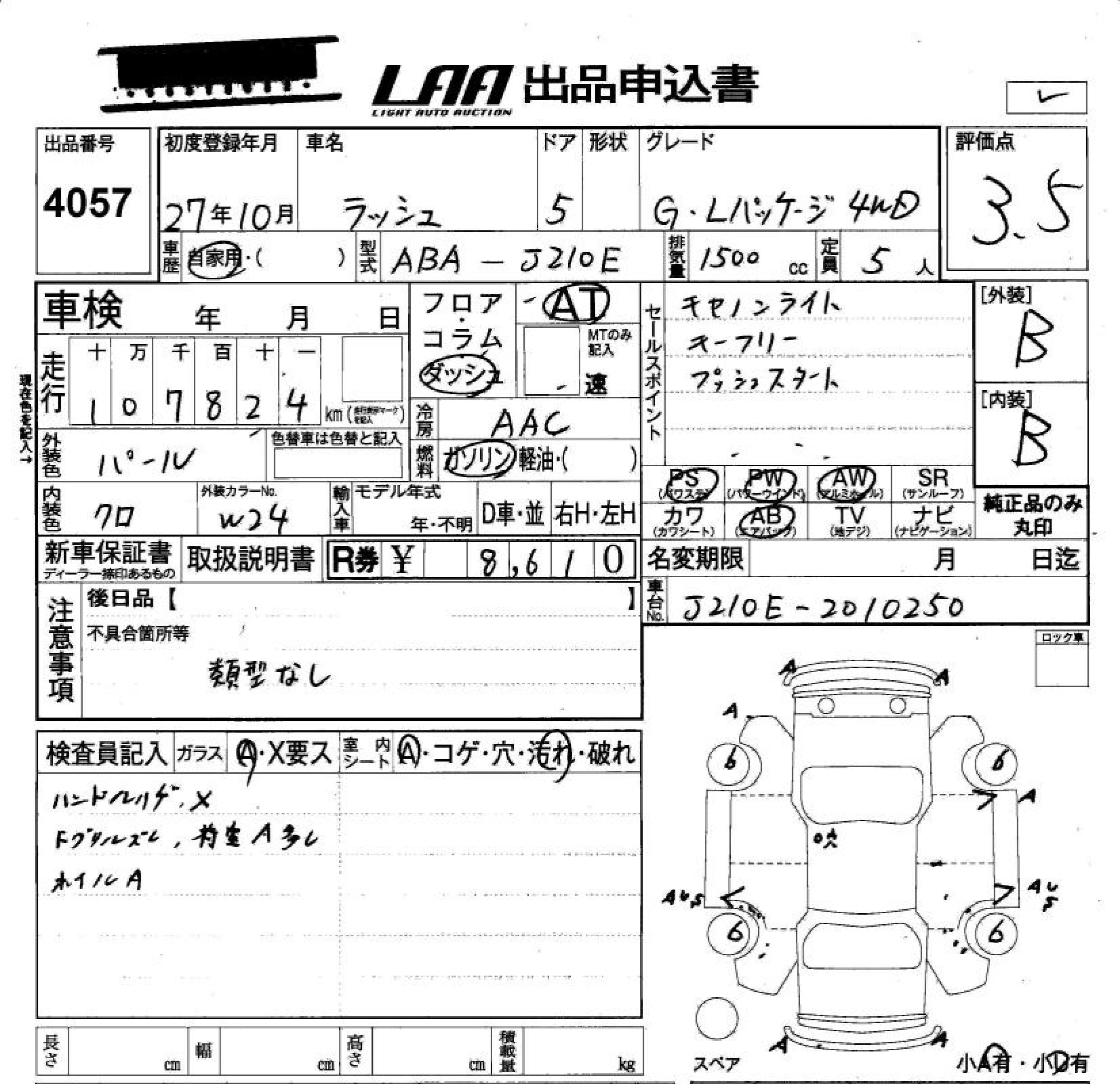 TOYOTA RUSH G L PACKAGE 4WD - лот 4057