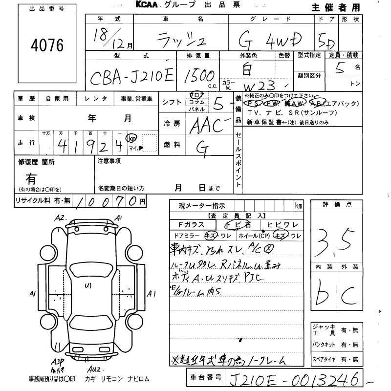 Оборудование: PS PW AW подушка безопасности депозит уплачен 10,070 иен