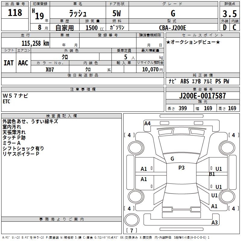 Оборудование: PS P 2 подушки безопасности ABS AW навигация депозит уплачен 10,070 иен