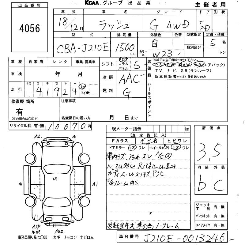 Оборудование: PS PW AW подушка безопасности депозит уплачен 10,070 иен