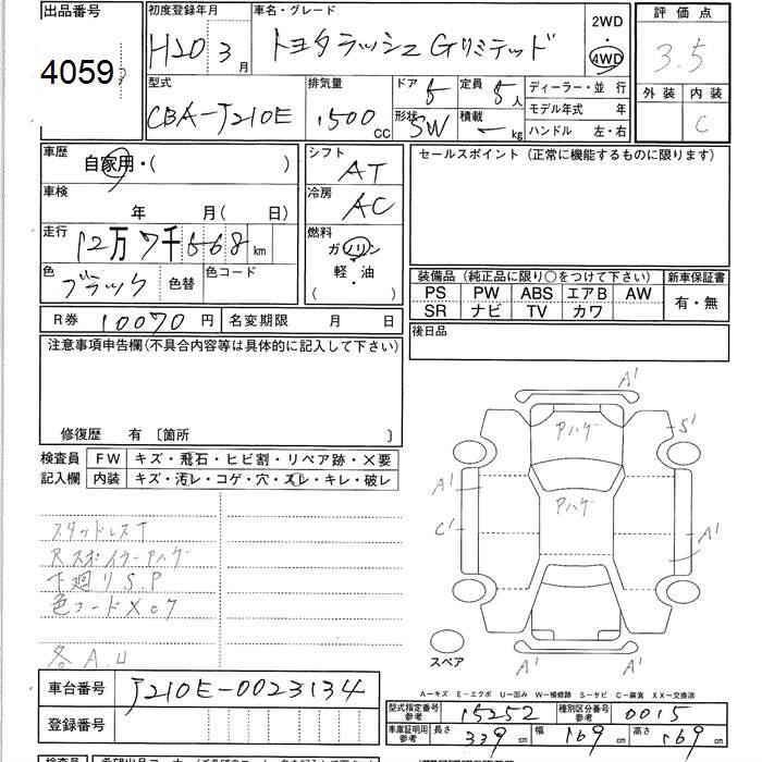 TOYOTA RUSH 4WD G LTD - лот 4059