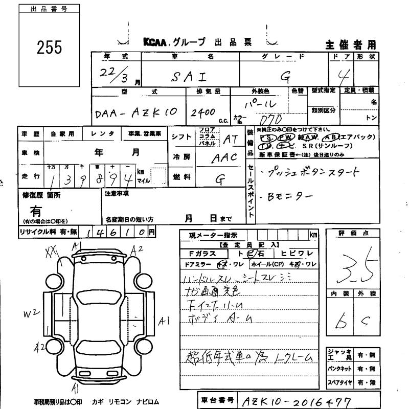 TOYOTA SAI G - лот 255