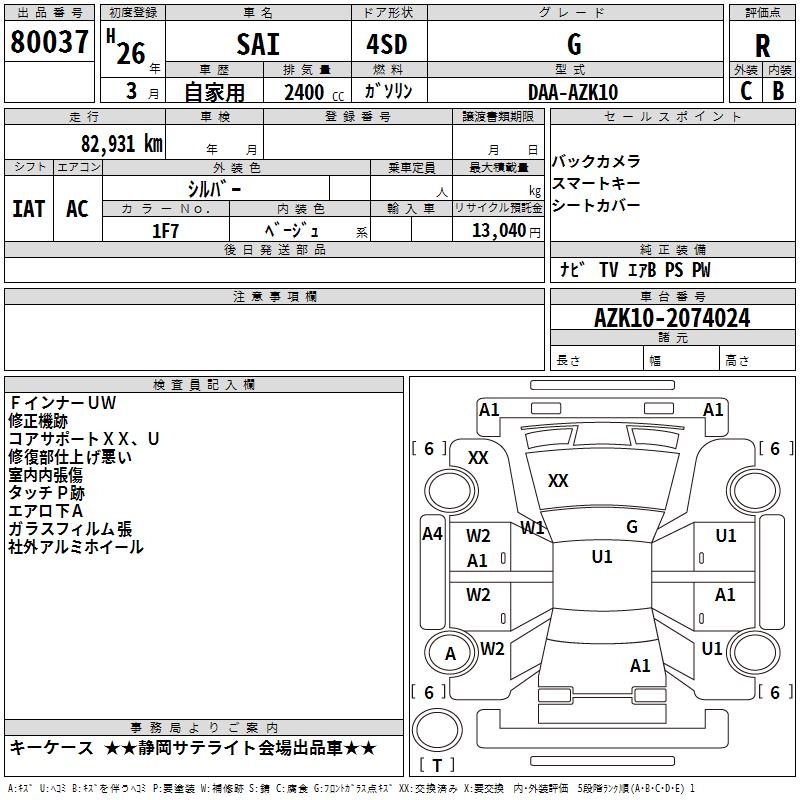 TOYOTA SAI G - лот 80037