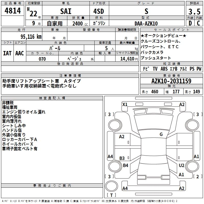 TOYOTA SAI S - лот 4814