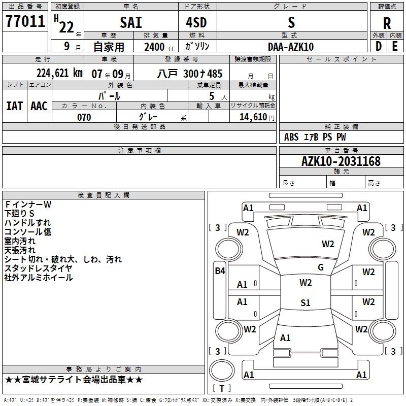 TOYOTA SAI S - лот 77011