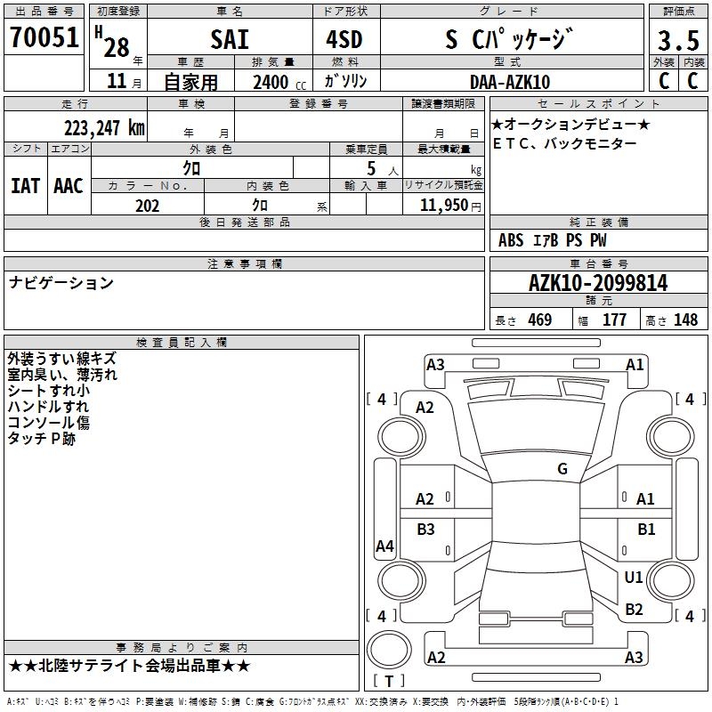 TOYOTA SAI S C PACKAGE - лот 70051