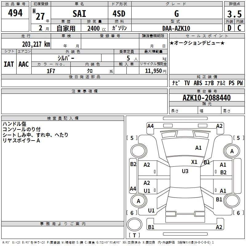 TOYOTA SAI G - лот 494