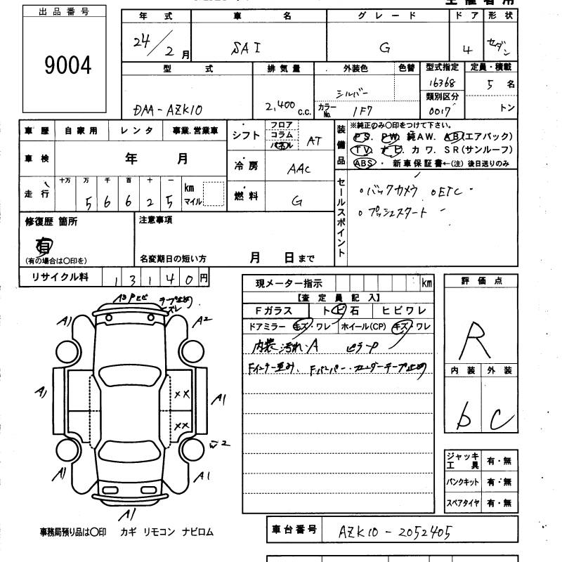 TOYOTA SAI G - лот 9004
