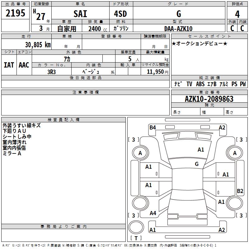 TOYOTA SAI G - лот 2195