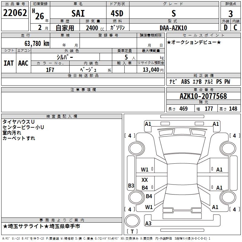 TOYOTA SAI S - лот 22062