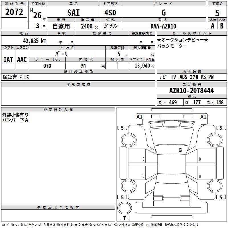 TOYOTA SAI G - лот 2072