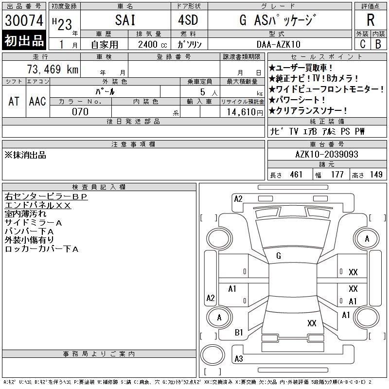 TOYOTA SAI G AS PACKAGE - лот 30074