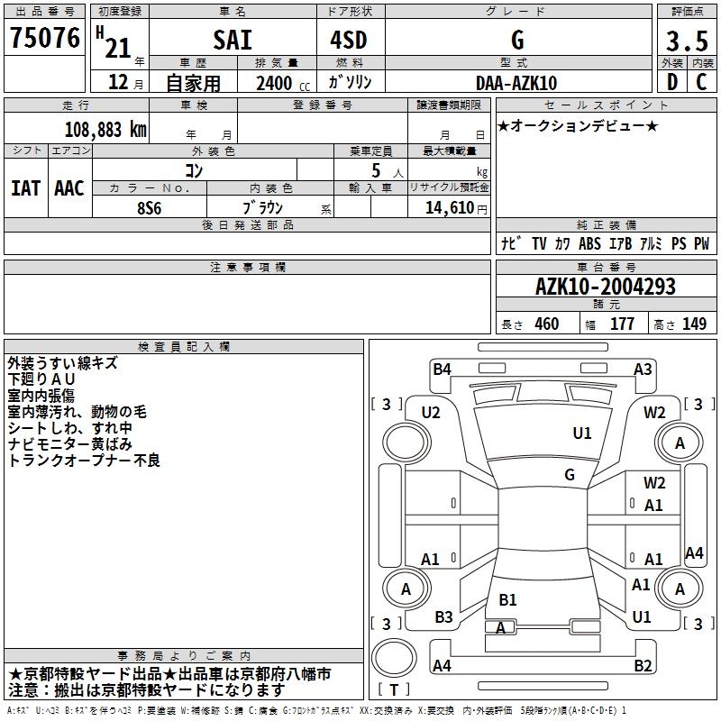 TOYOTA SAI G - лот 75076