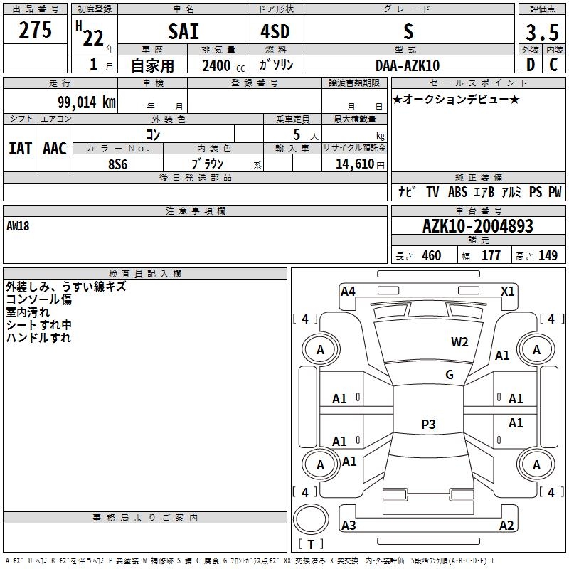TOYOTA SAI S - лот 275