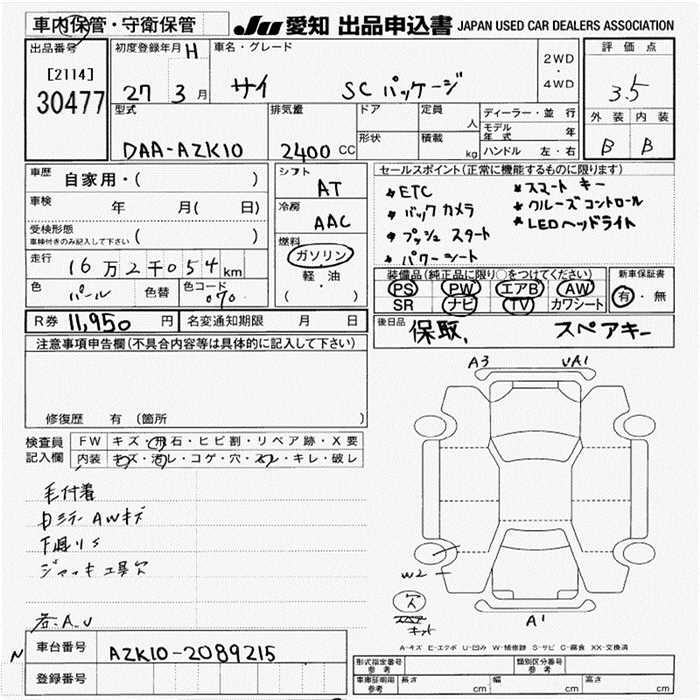 TOYOTA SAI S C PACKAGE - лот 30477