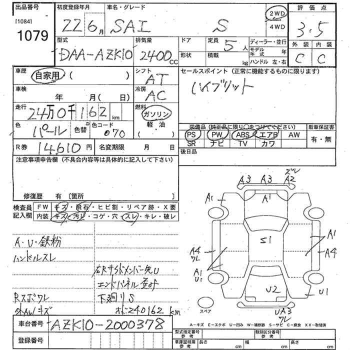 TOYOTA SAI S - лот 1079