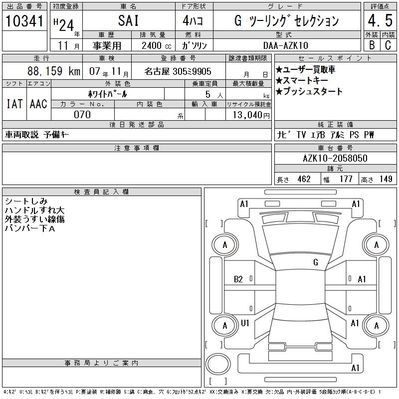 TOYOTA SAI G TOURING SELECTION - лот 10341