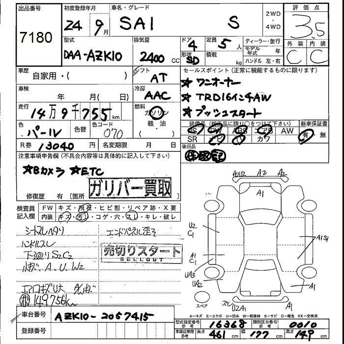 TOYOTA SAI S - лот 7180