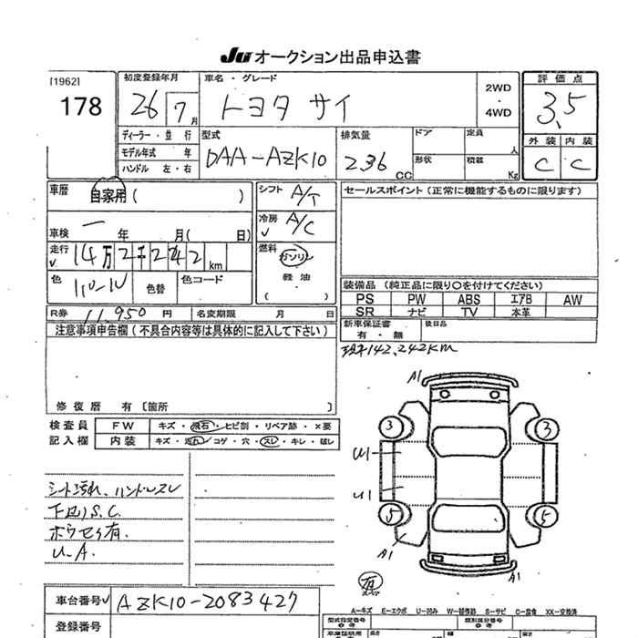 TOYOTA SAI - лот 178
