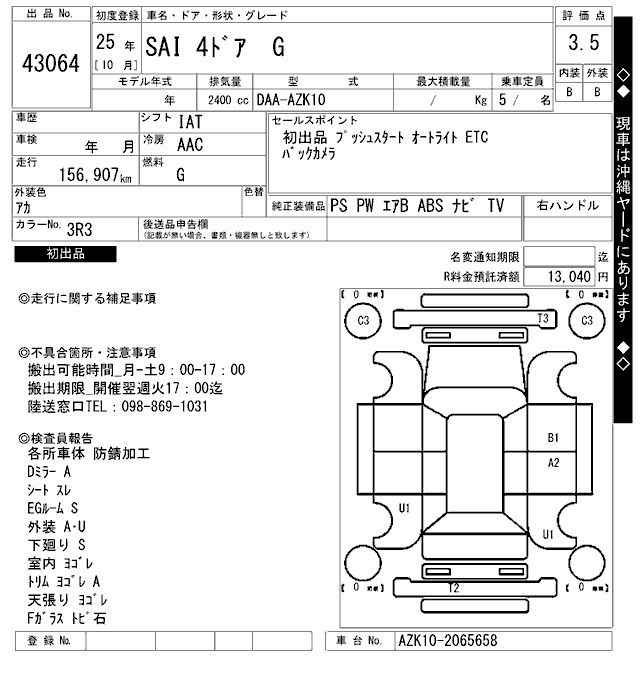 TOYOTA SAI G - лот 43064