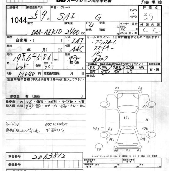 TOYOTA SAI G - лот 1044