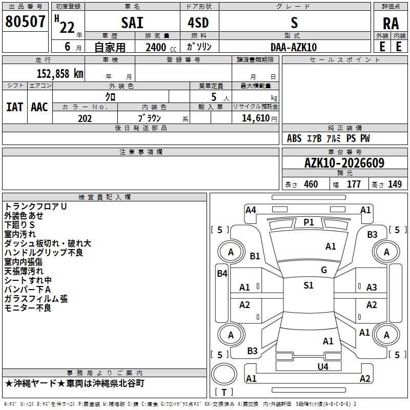 TOYOTA SAI S - лот 80507