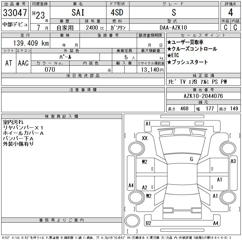 TOYOTA SAI S - лот 33047