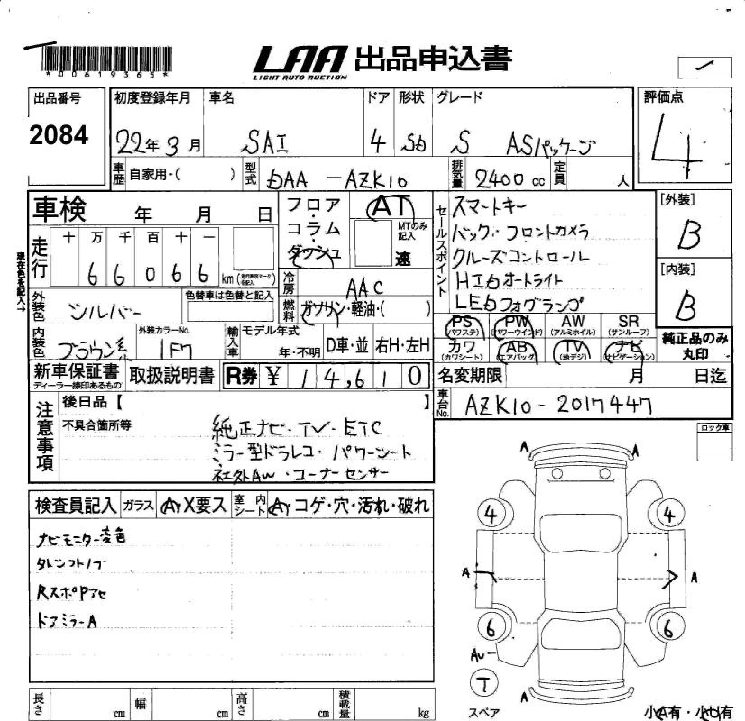 TOYOTA SAI S AS PACKAGE - лот 2084