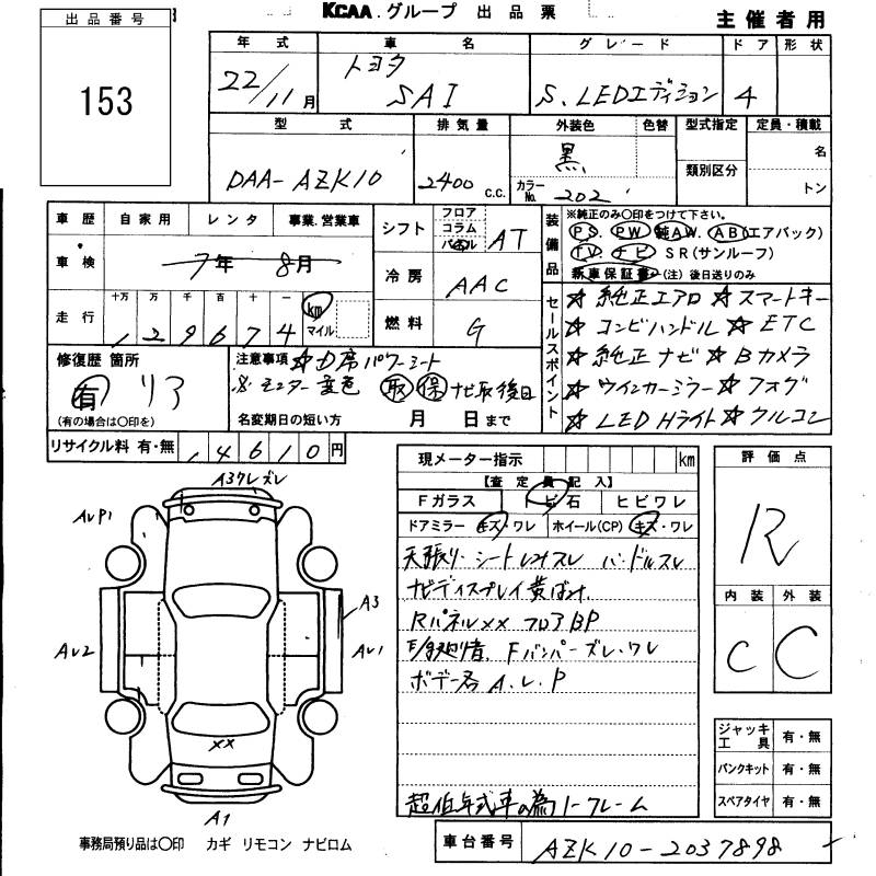 TOYOTA SAI S LED EDITION - лот 153