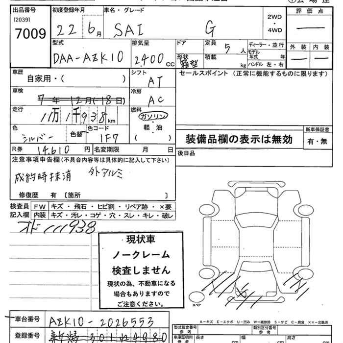 TOYOTA SAI G - лот 7009