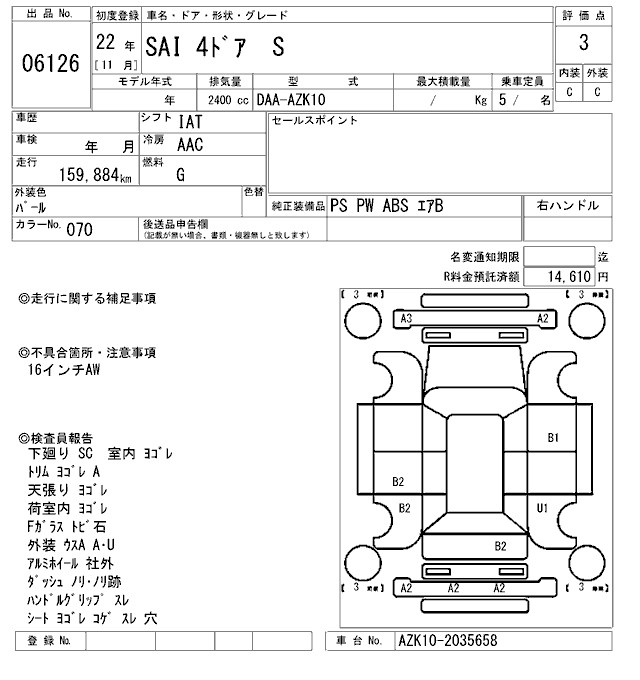 TOYOTA SAI S - лот 6126