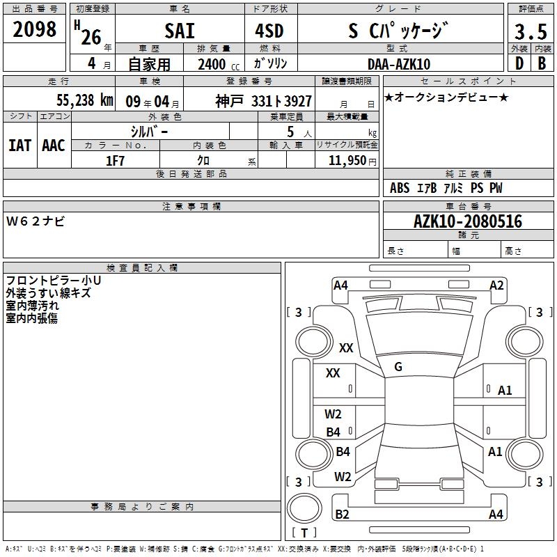TOYOTA SAI S C PACKAGE - лот 2098