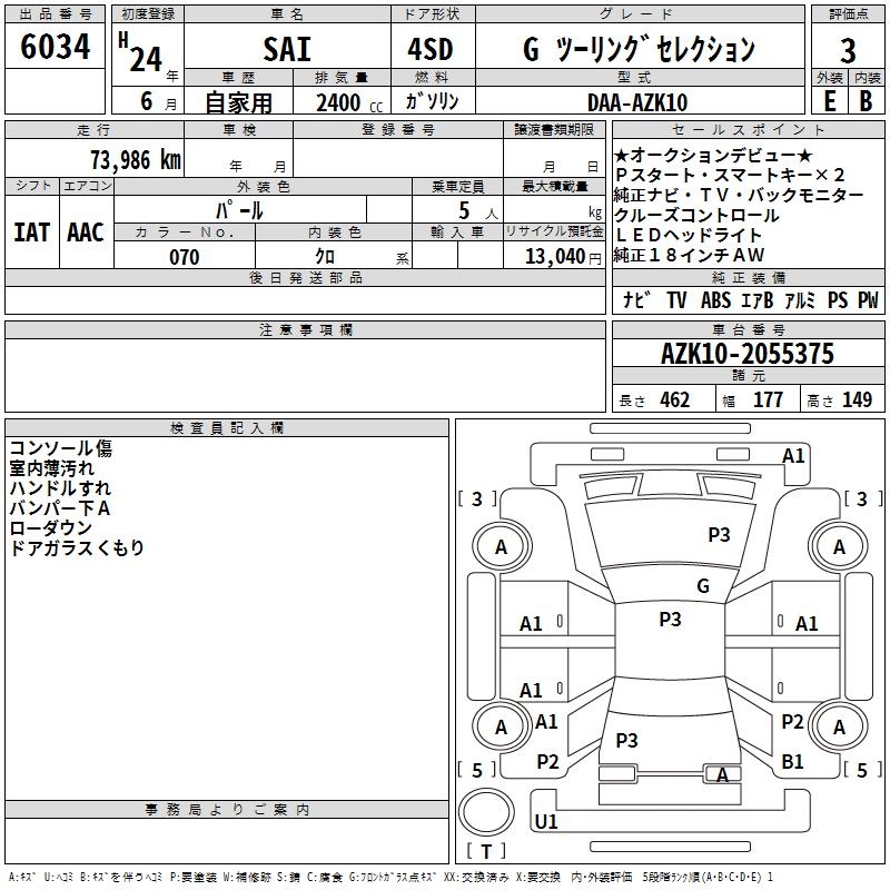 TOYOTA SAI G TOURING SELECTION - лот 6034