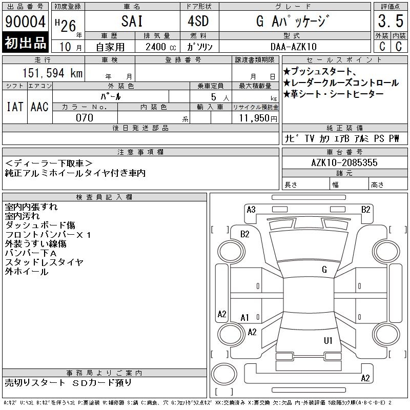 TOYOTA SAI G A PACKAGE - лот 90004