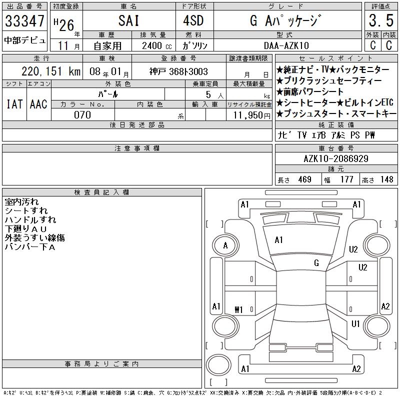 TOYOTA SAI G A PACKAGE - лот 33347