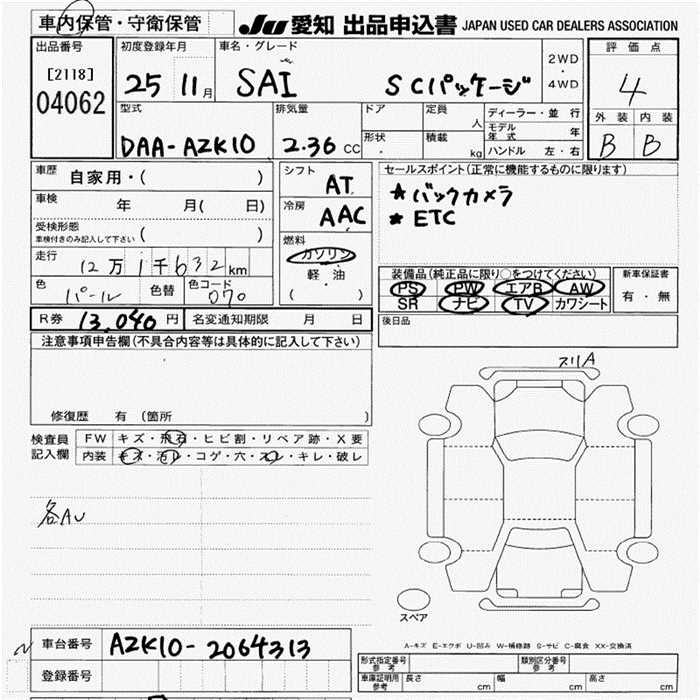 TOYOTA SAI S C PACKAGE - лот 4062