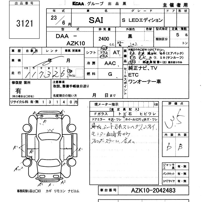 TOYOTA SAI S LED EDITION - лот 3121