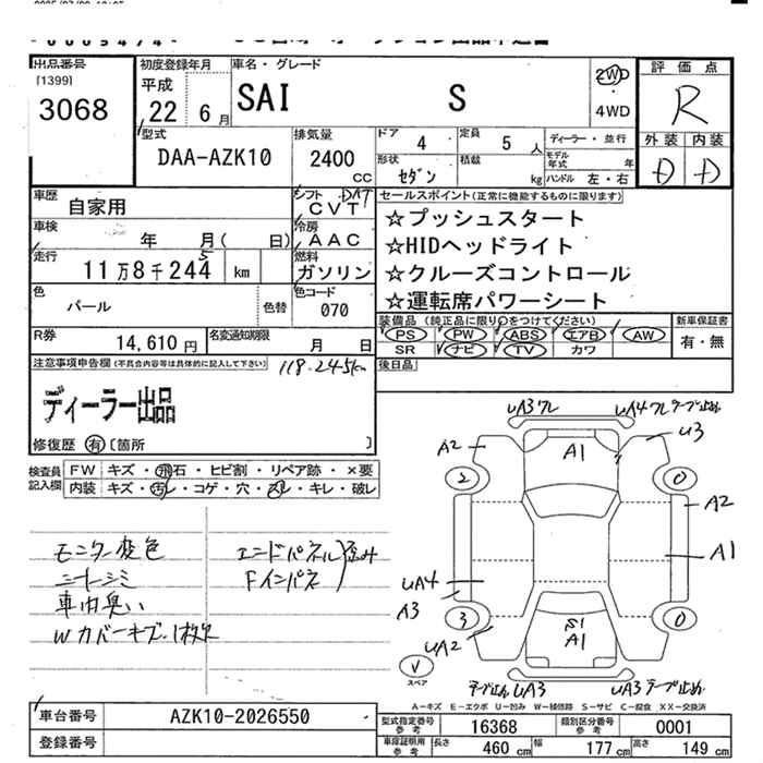 TOYOTA SAI S 2WD - лот 3068